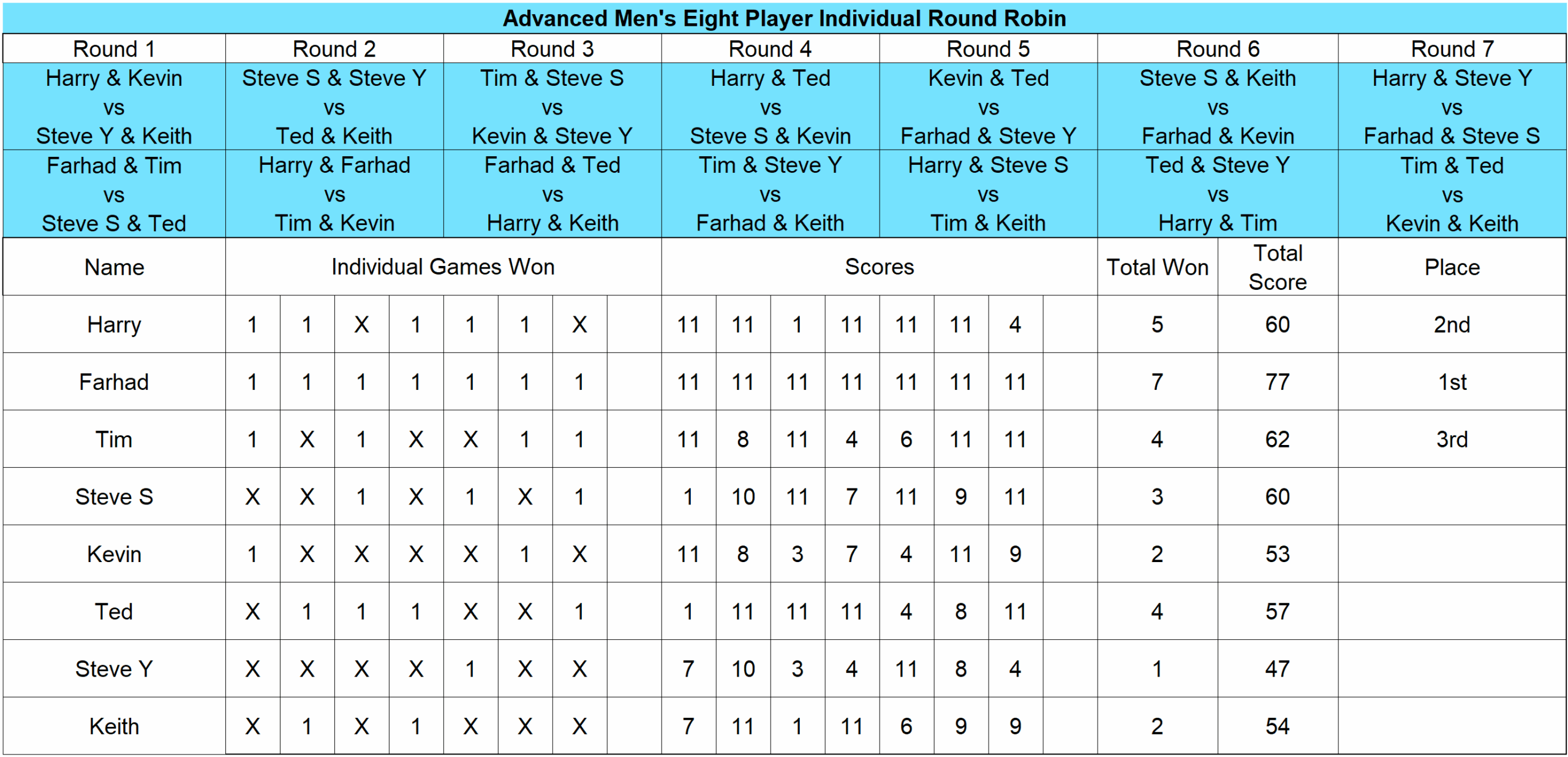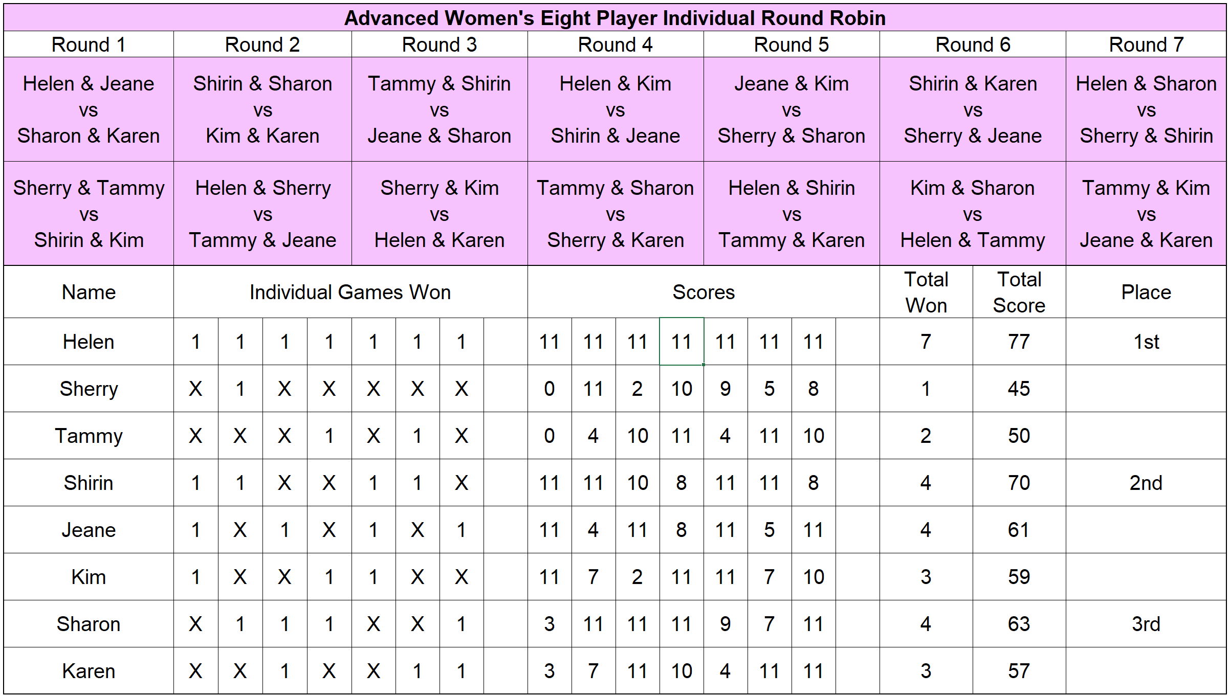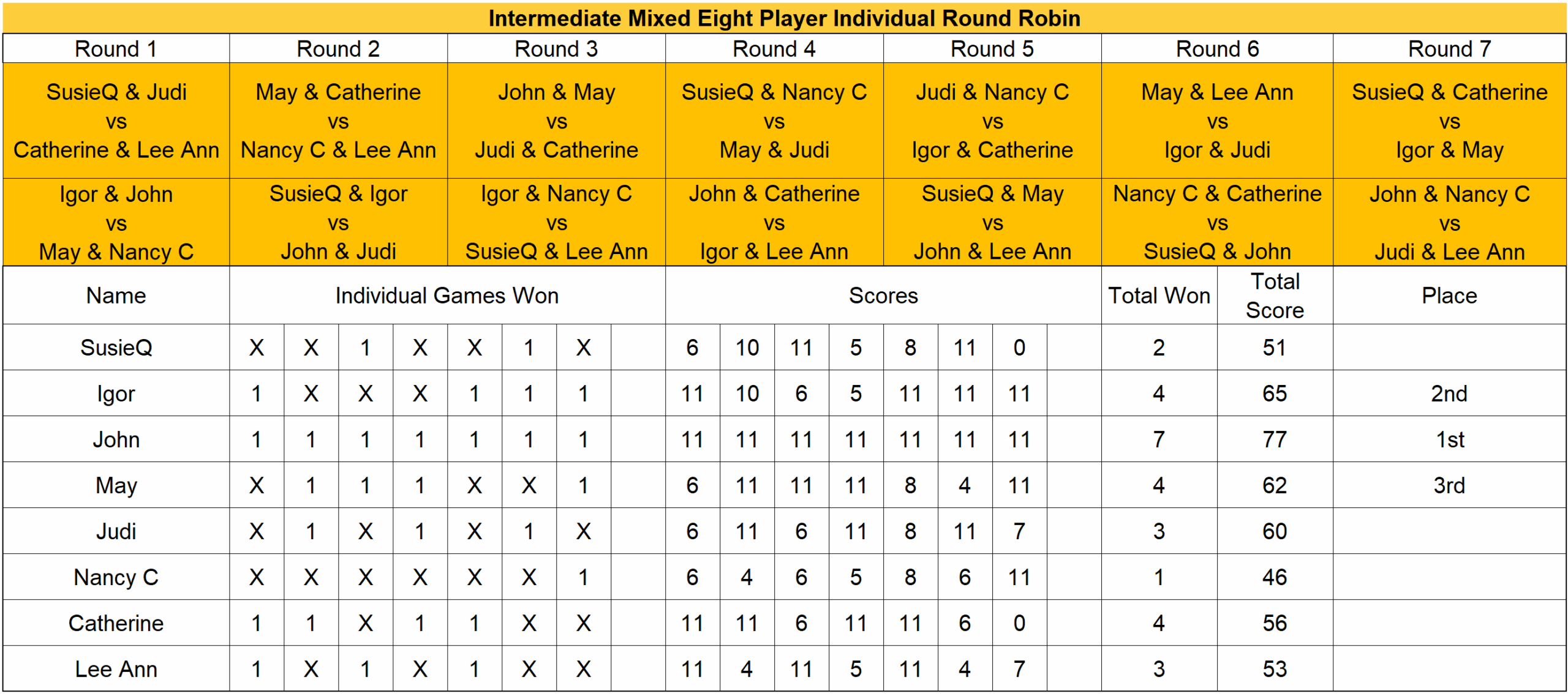 Congratulations to all participants, and to our three undefeated winners: