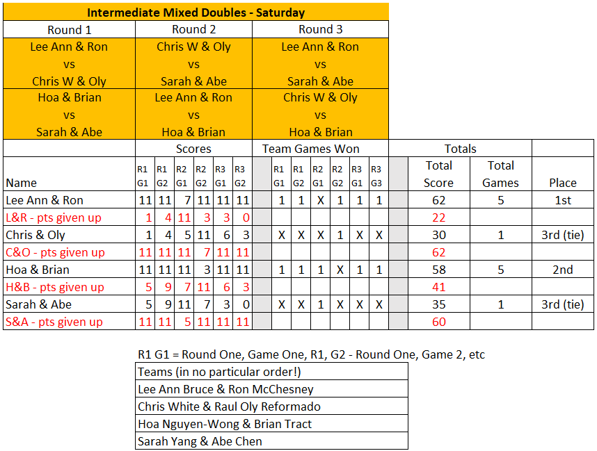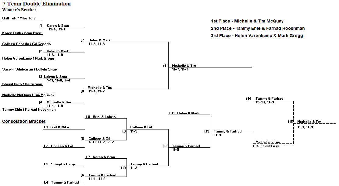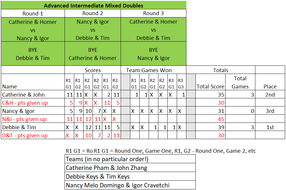 Mixed Doubles Club Championship Results – 10/25/25 & 10/26/25 Full results of Mixed Club Championships held on 10/25 & 10/26. View Photos here! Intermediate Mixed Results Advanced Intermediate Mixed Results Advanced Mixed Results Intermediate Mixed Doubles Advanced Intermediate Mixed Doubles Advanced Mixed Doubles